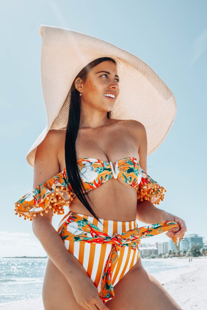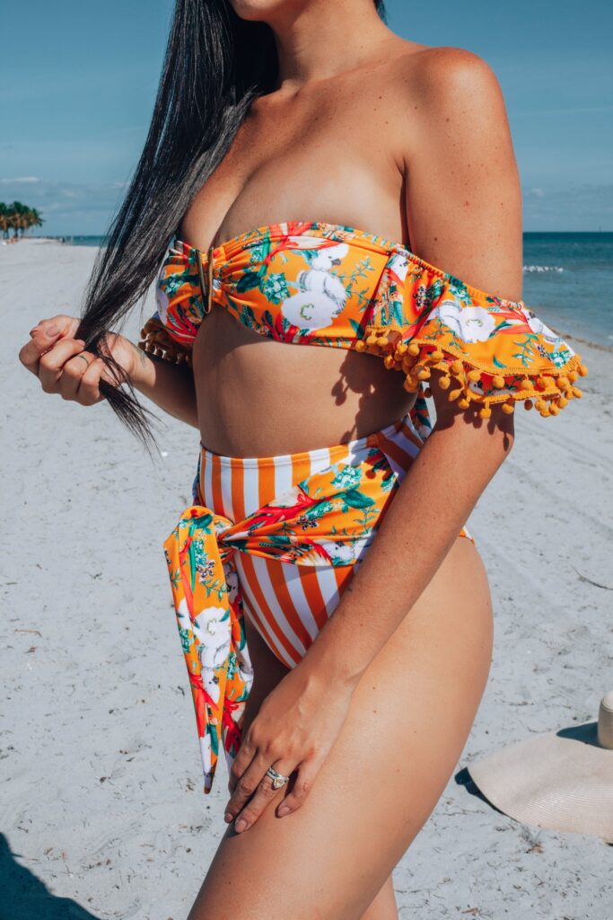 Le bas est taille haute avec comme une ceinture incorporée dans le bikini que vous pouvez nouer sur le devant. En fait, j'ADORE cette pièce supplémentaire car elle cache les tacos végétaliens que j'ai mangés le week-end… et bien plus encore.