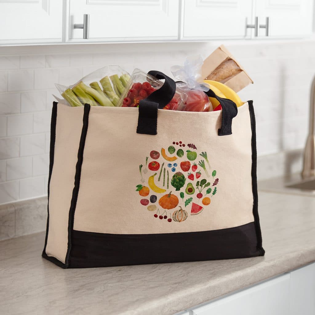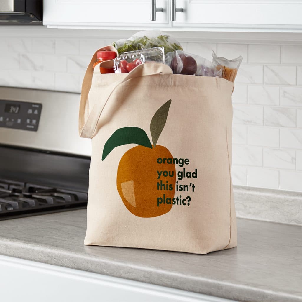 Nos fourre-tout fourre-tout sont également parfaits pour les sorties shopping ! Mais assurez-vous de penser au-delà de l'épicerie. Faire un tour au centre commercial? Rangez un fourre-tout en toile de tous les jours (ou deux !) Dans votre poche ou votre sac à main pour ranger tous vos achats. Choisissez et personnalisez un motif pour le côté… Votre cabas en toile se démarquera toujours parmi une mer de sacs en plastique et en papier ! Nous avons un faible pour le design Orange You Glad, une façon tellement amusante de partager votre style respectueux de l'environnement.