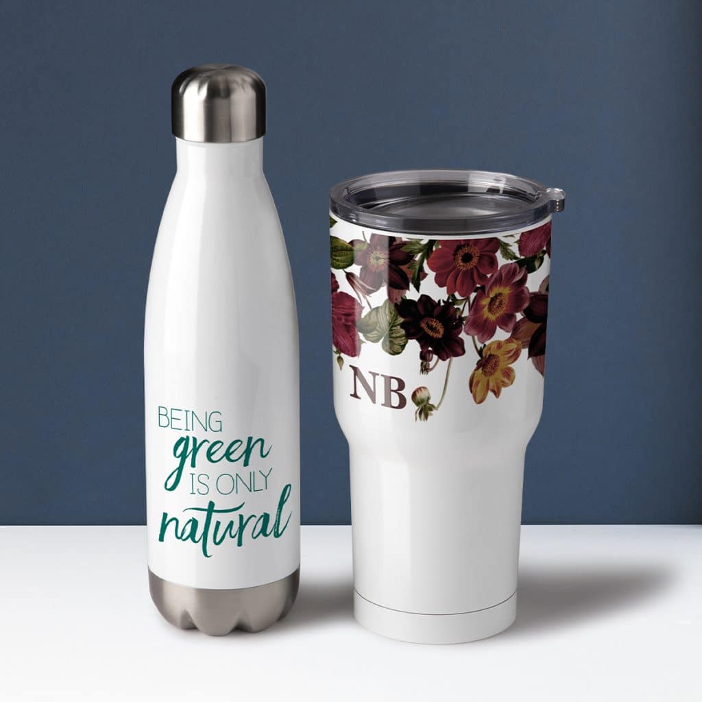 Évitez les bouteilles en plastique à usage unique et choisissez l'une de nos options de verres personnalisés. Notre gobelet isolé contient 30 oz. de liquide, a un couvercle à boire en acrylique à pression et est parfait pour les boissons chaudes OU froides. De plus, vous pouvez ajouter une paille en métal réutilisable, si c'est votre style ! Notre bouteille d'eau isolée est une autre excellente alternative qui contient 20 oz. de liquide et dispose d'un bouchon à visser anti-éclaboussures. L'un ou l'autre récipient est parfait pour vous aider à arrêter les bouteilles d'eau en plastique. De plus, vous pouvez vanter votre style personnel en le personnalisant avec des photos, du texte, des embellissements et des designs uniques.