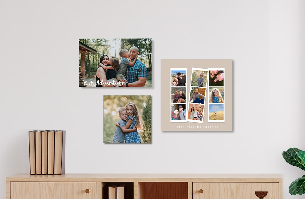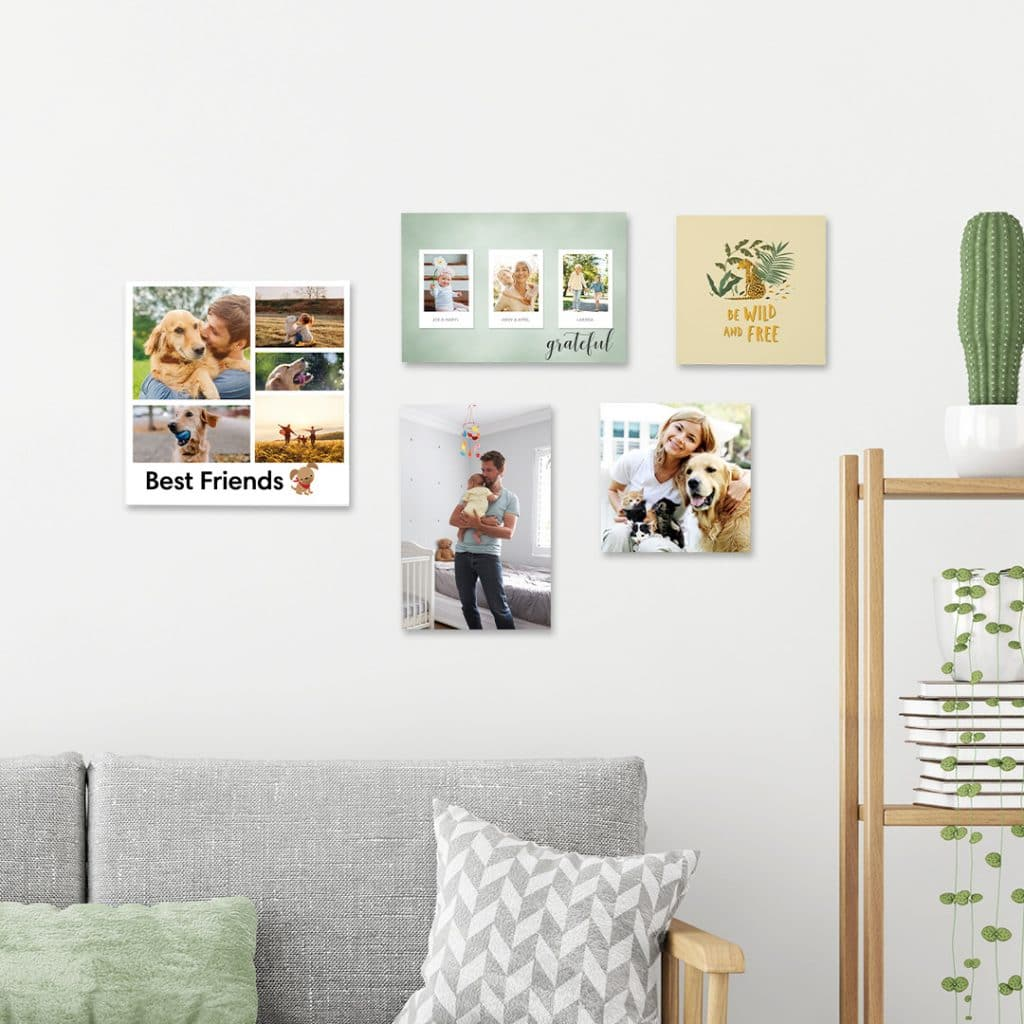 Nous avons peut-être ajouté de nouvelles tailles, mais vous pouvez vous attendre à la même personnalisation qui rend votre mur photo vraiment unique. Choisissez un souvenir préféré pour une vignette photo pleine audacieuse ou créez un collage avec des vignettes Multiphoto ou Photogrid. Vous pouvez autoriser vos photos à parler d'elles-mêmes ou ajouter du texte pour un message de votre choix.