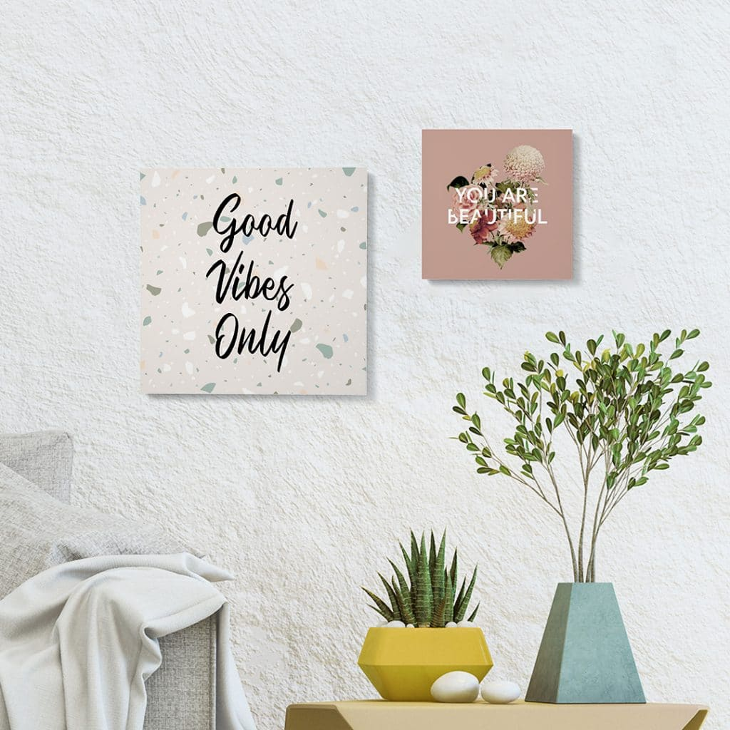 Vous avez suffisamment de photos dans la maison? Il existe de nombreux modèles de texte pour ajouter de la variété à votre galerie et des phrases significatives à votre décor! Pour un message positif, les vignettes Good Vibes Terrazzo et You Are Beautiful servent de rappels élégants et quotidiens à continuer. Si vous voulez ajouter du sperme à votre coin café, prenez notre design ludique Hello Coffee et commencez votre journée du bon pied.
