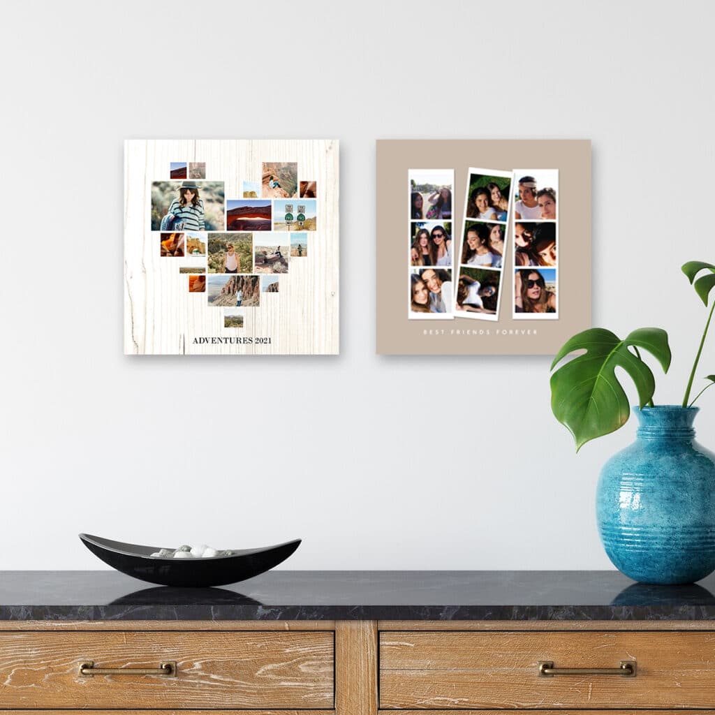 Vous les connaissez depuis la maternelle, et ils vous accompagnent ou meurent depuis. Avec tant d'années entre vous deux, pourquoi ne pas rassembler certaines de vos photos préférées et créer un collage photo unique en son genre ? Cette adorable conception Heart Collage peut être imprimée sur des impressions sur toile, des affiches ou des carreaux de photo. Un autre design adorable que vous pouvez créer avec nos carreaux photo est notre produit de site Web.