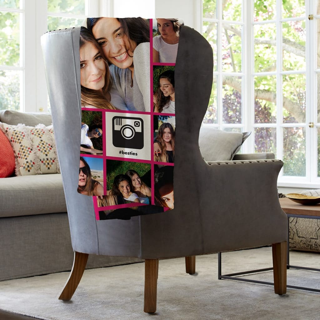 Vos visages préférés sont loin ? Blottissez-vous de près, peu importe la distance, avec notre couverture carrée multi-photos. Cette adorable conception quadrillée supplie pratiquement de présenter vos clichés Instagram ! De plus, l'icône de caméra mignonne au milieu ajoute juste ce flair supplémentaire des médias sociaux. Faites-en un correspondant à votre meilleure amie lointaine - parfait pour les conversations vidéo !