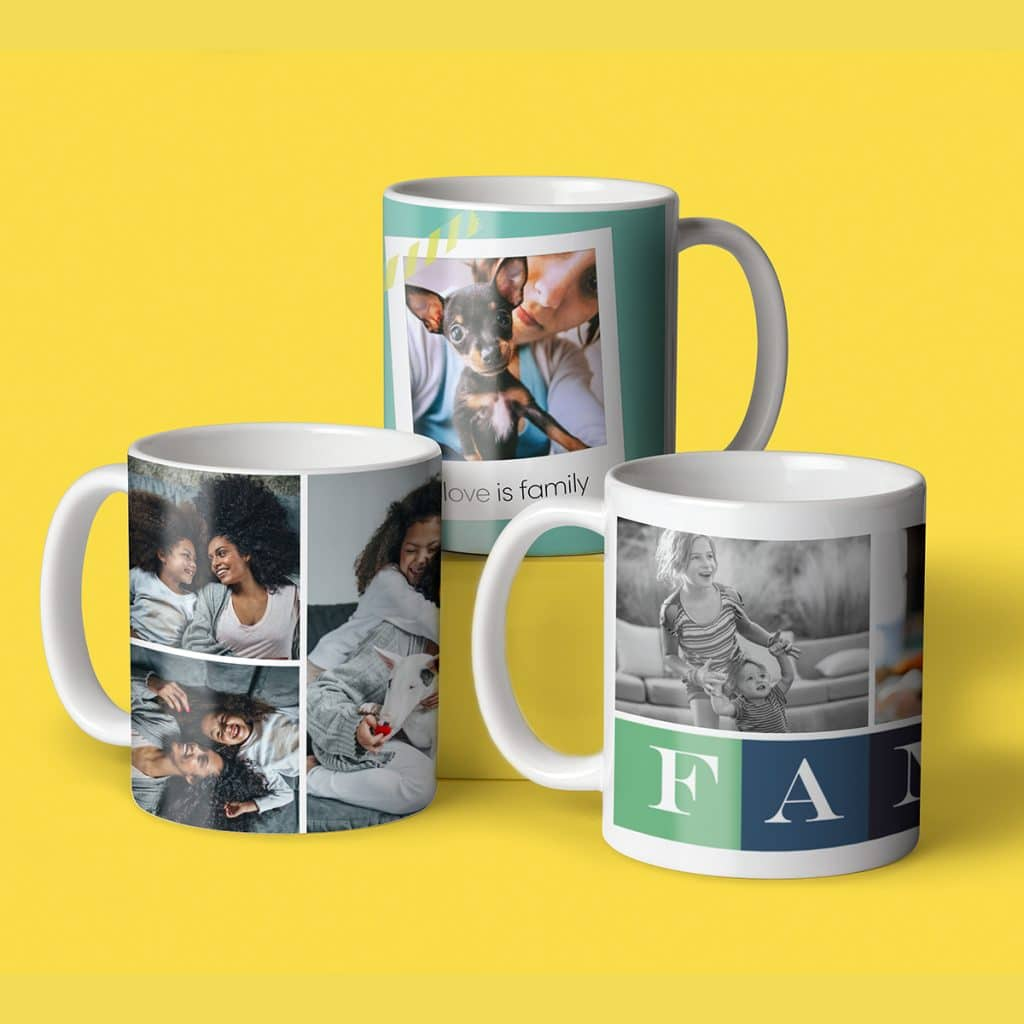 La plupart de nos designs de tasses sont également conçus pour ces clichés de médias sociaux. Nous pensons personnellement que notre tasse à café est parfaite ! La mise en page et le style sont amusants et légers, et vous pouvez également présenter plusieurs photos de vos moments les plus amusants.