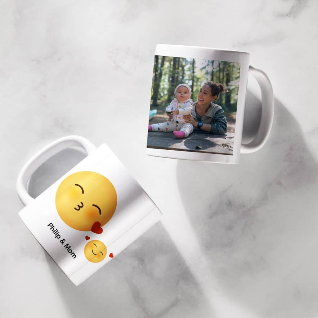 Si vous voulez vraiment vous mettre dans l'esprit des médias sociaux, optez pour le design du mug. Sérieusement… celui-ci est le moyen le plus mignon de partager vos clichés préférés à chaque gorgée.