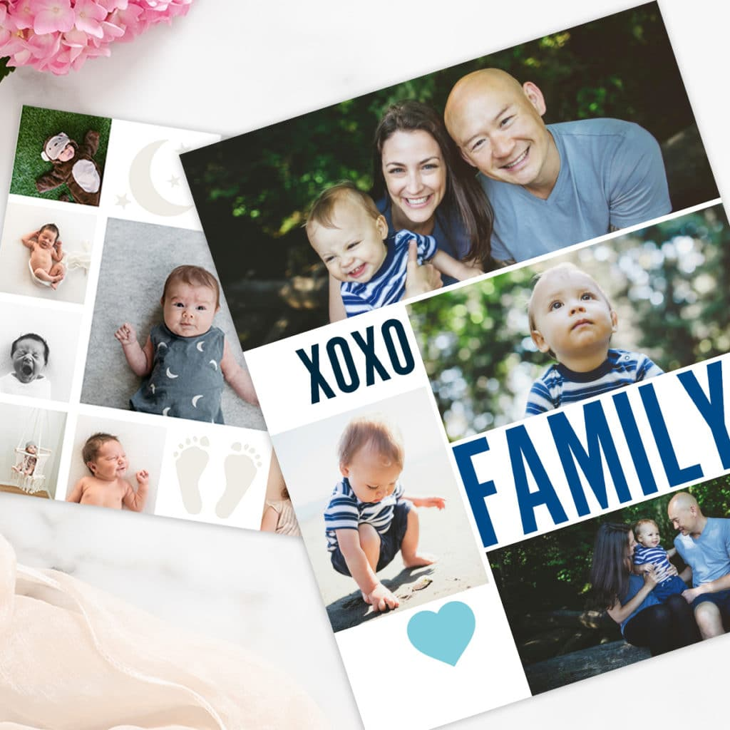 Enfin, vous pouvez personnaliser votre impression de collage avec des accents amusants, des embellissements et des arrière-plans. Si vous n'êtes pas familier avec notre collection d'embellissements, nous en avons plus de 3 000 parmi lesquelles choisir et nous en ajoutons toujours plus. Vous pouvez parcourir différentes catégories dans notre créateur de projet comme Famille et amis, Amour, Animaux et Phrases. Si vous ne voyez pas une phrase que vous souhaitez utiliser, vous pouvez toujours ajouter du texte personnalisé à votre projet.