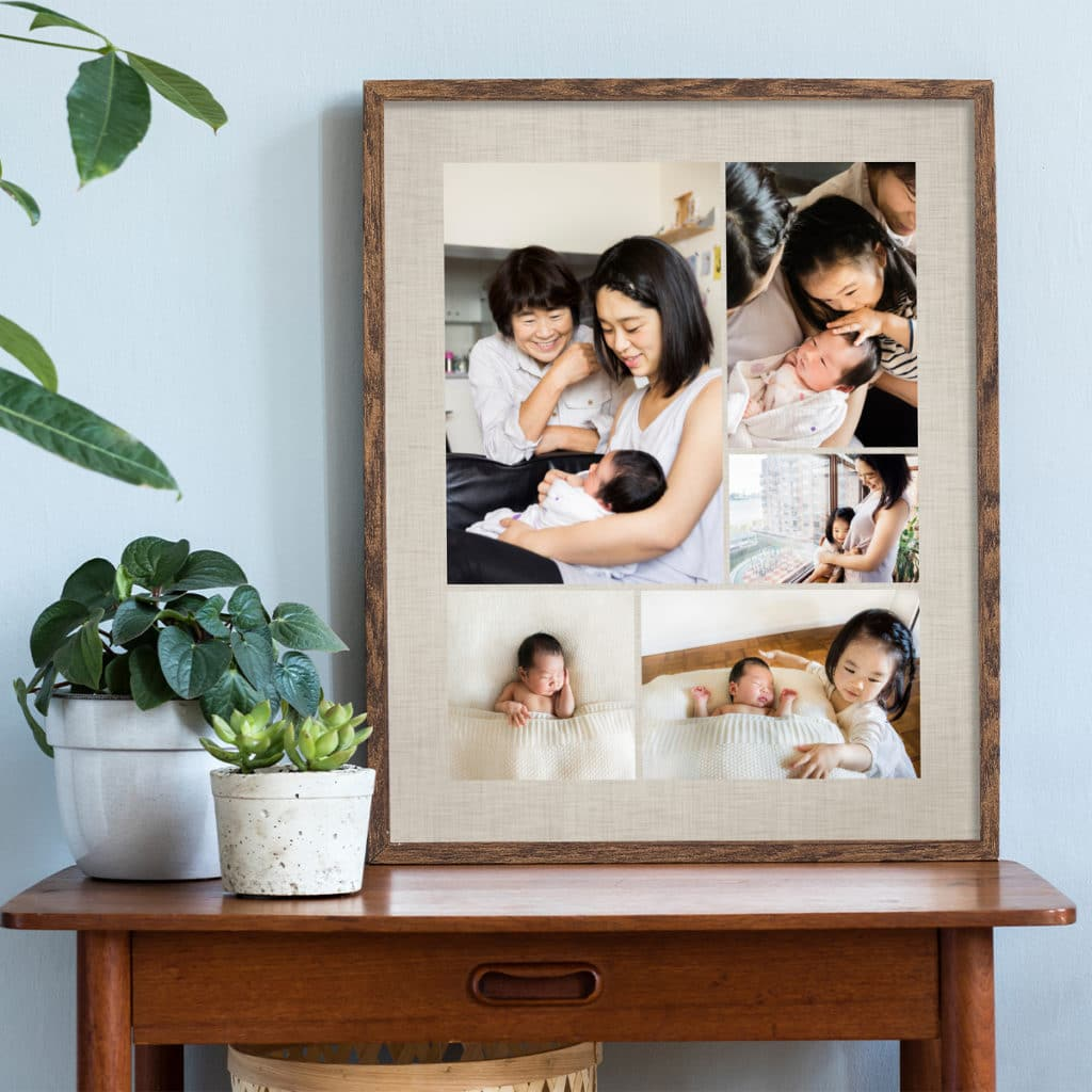 Si vous souhaitez vraiment rendre votre souvenir encore plus spécial, n’oubliez pas le cadre! À partir de la taille 11 × 14 et plus, nos grandes impressions de collage peuvent être encadrées avec votre choix de finition en bois noir, naturel ou noyer. Une fois que vous avez fait votre sélection sur notre site pour ordinateur, cliquez sur FAIRE CE PRODUIT. Ne vous inquiétez pas: si vous changez d’avis après coup, vous pouvez toujours modifier les tailles et d’autres options dans le générateur de projets facile à utiliser.