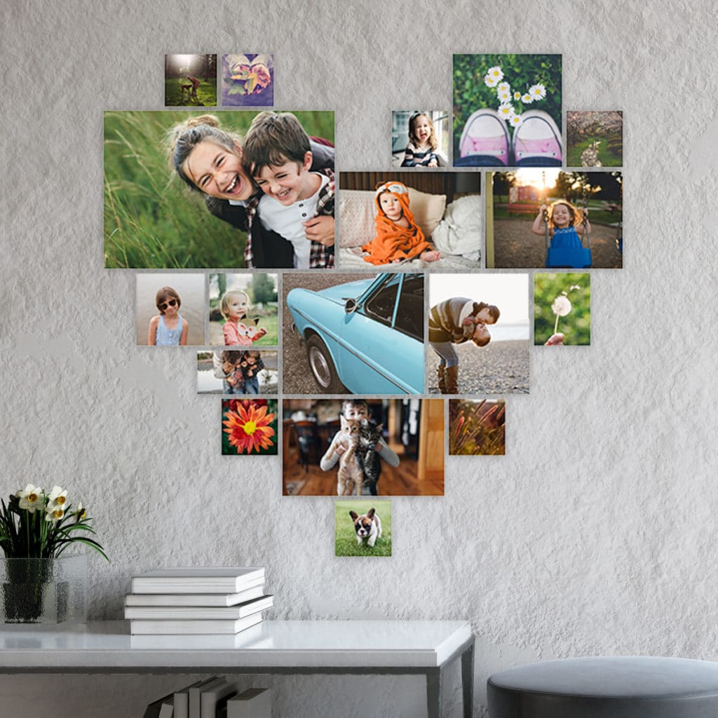 La première chose à faire est de décider de la taille d’impression de collage que vous souhaitez créer. Chez personnalisershirt.fr, les tailles d'impression de collage commencent à 4 × 4 et vont jusqu'au format affiche 20 × 30. Avec nos impressions de collage de plus petite taille, vous pouvez choisir une finition brillante ou mate. Si vous choisissez une impression de plus grand format, elle est livrée avec une finition mate.