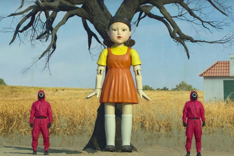 (Quelques aperçus de la poupée : l'équipe de production de Squid Game a en fait construit une poupée géante pour le jeu "Red Light, Green Light". Le directeur artistique Chae Kyoung-sun a expliqué que l'inspiration pour le look provenait des illustrations de manuels scolaires de la la popularité du jeu de cour d'école dans les années 70 et 80. Dites-le à vos amis costumés pendant que vous les faites suffisamment glisser en vous déguisant en petit enfant coréen.)