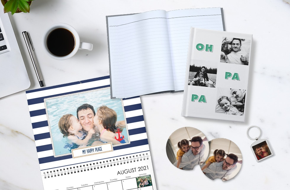 Souvenirs et organisation main dans la main? Crois le! Vous pouvez créer des cadeaux qui ajoutent des touches personnelles tout en aidant papa à garder la tête droite au travail. Un calendrier personnalisé aide sa journée à se dérouler sans heurts et un ensemble de bureau en similicuir organise ses affaires!