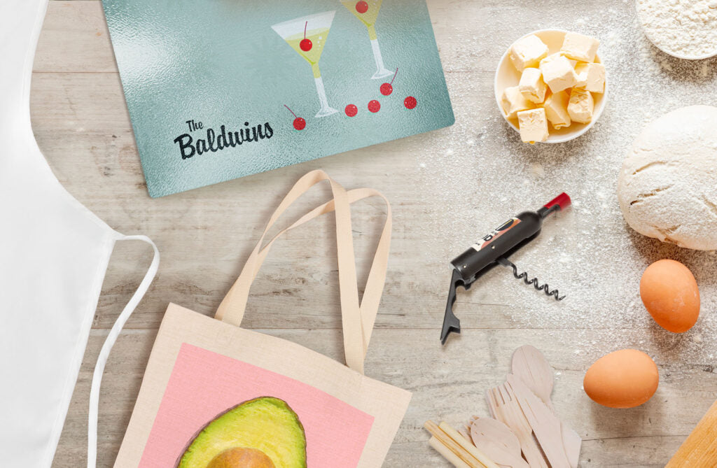 Pour l'ami ou le membre de la famille qui prépare toujours quelque chose de délicieux (ou essaie de le faire !), ne cherchez pas plus loin qu'un tablier personnalisé, une planche à découper en verre, un tire-bouchon/ouvre-bouteille et des sacs fourre-tout pour ramasser tous ces délicieux ingrédients.