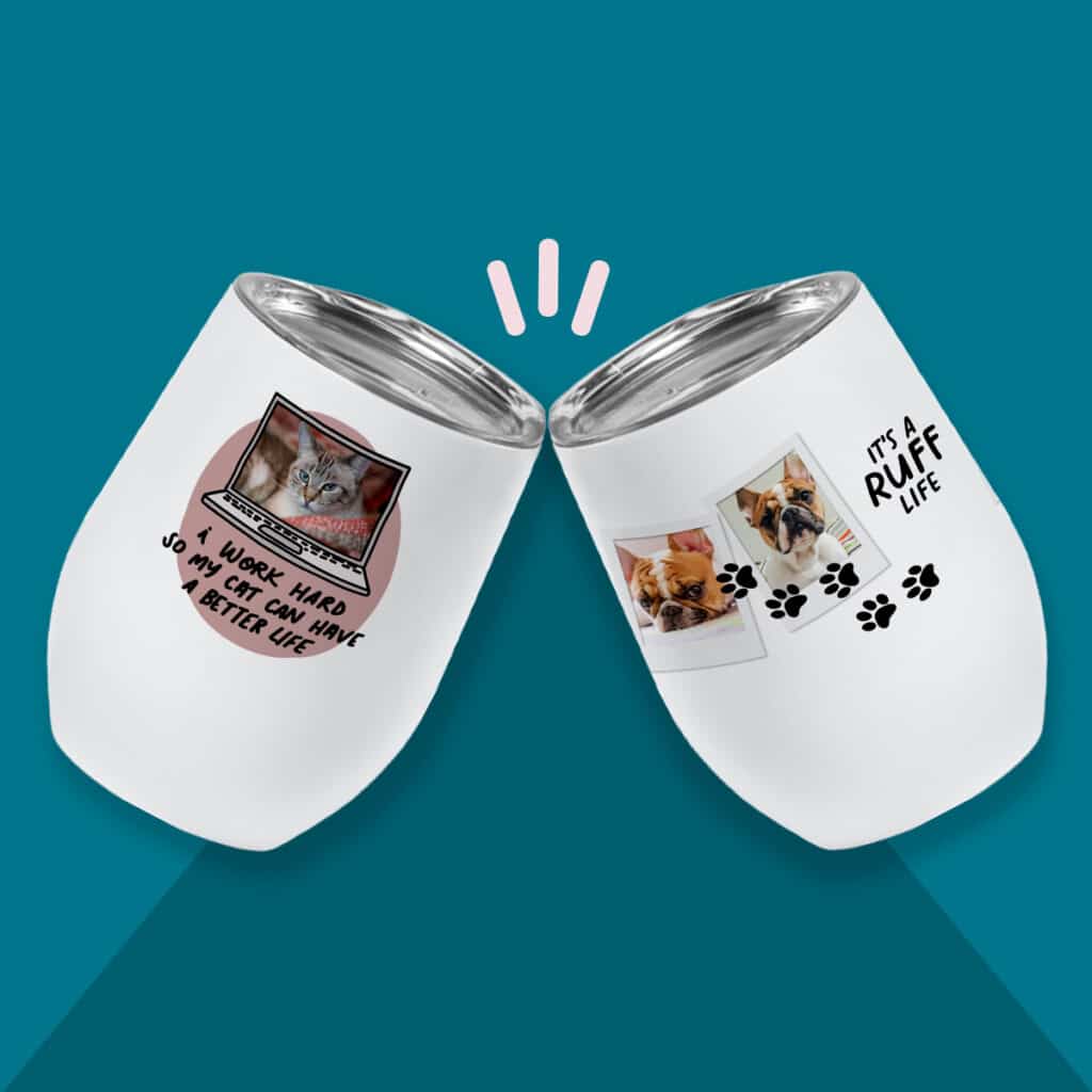 Appel à tous les parents d'animaux! Nous avons de toutes nouvelles options de tasses à vin que vous allez adorer. Travaillez-vous dur pour que votre chien ou votre chat puisse avoir une vie meilleure ? Nous connaissons tellement le sentiment… mais quand c'est à votre tour de vous détendre, vous avez besoin de notre coupe à vin Better Life Pet ! Nous adorons le traitement ludique des polices, et il vous offre un espace unique pour montrer le visage adorable de votre ami à quatre pattes.