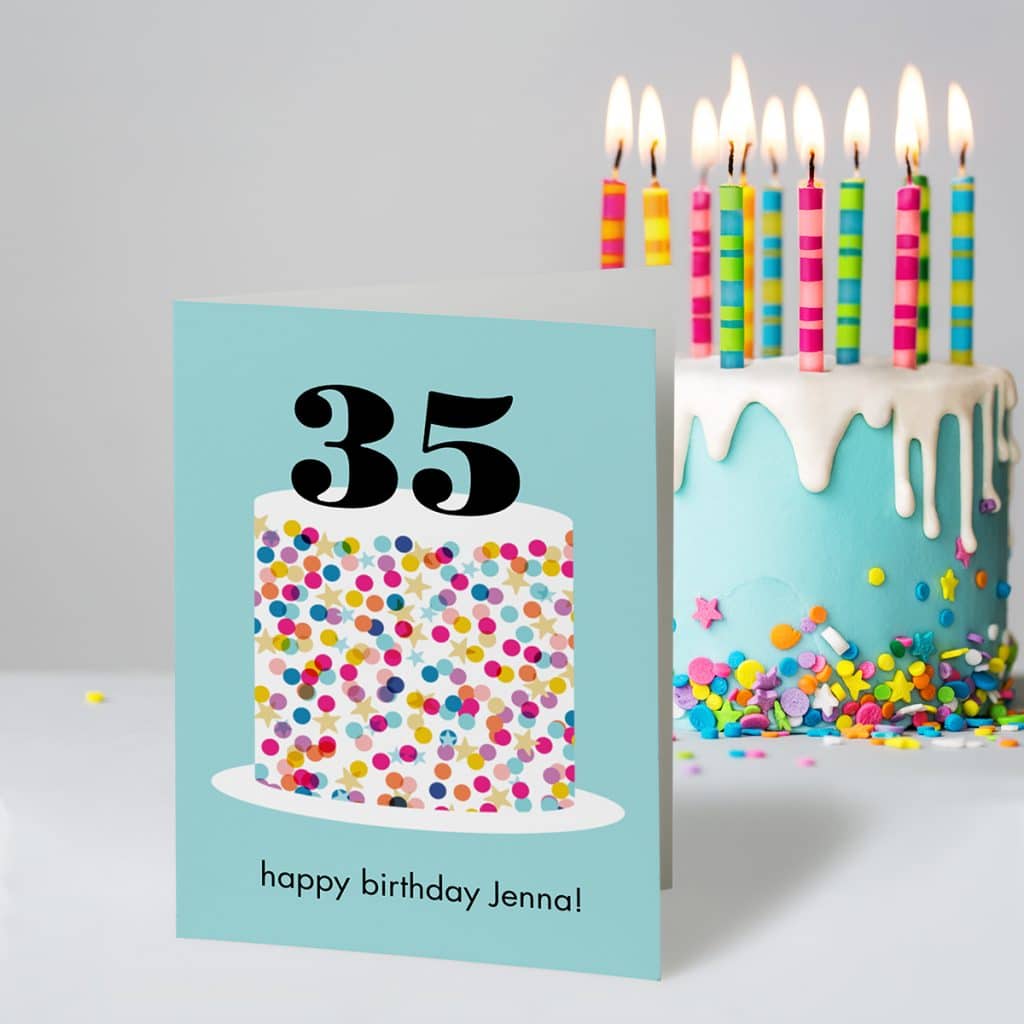 Notre conception de carte Sprinkle Cake est un adorable classique ! Le fond bleu ciel associé aux paillettes colorées brillantes ne fait que crier « Célébrons ! ». Modifiez le numéro sur le dessus du gâteau pour qu'il corresponde à l'âge de votre bien-aimé, et personnalisez le texte en bas pour votre propre message spécial.