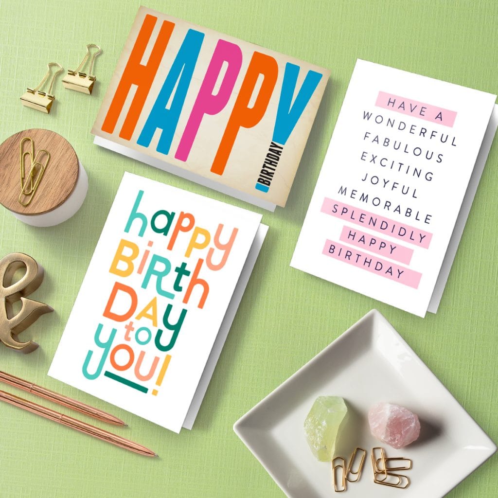 La carte Typographic Happy Birthday est un moyen remarquable d'envoyer les meilleurs vœux d'anniversaire. Entre les couleurs vives et la police audacieuse, ce design fait une déclaration claire… votre ami ou membre de la famille passera une journée incroyable, sans aucun doute !