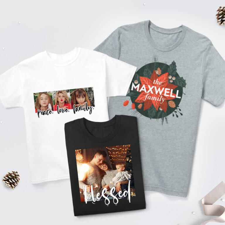 Faites une déclaration de style avec vos photos préférées, vos phrases amusantes ou l'un de nos designs exclusifs imprimés sur des t-shirts personnalisés pour adultes. Nos t-shirts pour adultes sont disponibles dans les tailles Small à XXL, et nos t-shirts pour jeunes sont disponibles dans les tailles Small à Large. Les deux t-shirts sont disponibles dans les coloris blanc, gris ou noir. Les t-shirts pour tout-petits sont disponibles en 3 tailles et dans un coloris blanc uniquement.