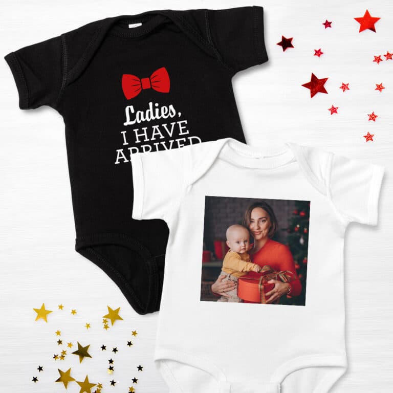Habillez votre tout-petit avec un confort et un style personnalisés lorsque vous personnalisez une grenouillère pour bébé ultra douce et amusante avec votre propre création unique ou choisissez l'un de nos modèles amusants. Astuce : choisissez le même design et la même disposition de photo sur votre barboteuse pour bébé que sur votre t-shirt pour plus de gentillesse !