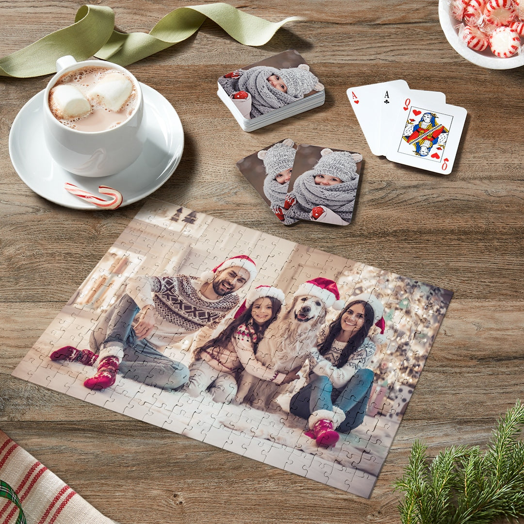 Aidez monsieur à gagner lors de sa prochaine soirée poker avec un jeu de cartes personnalisé. Ajoutez ses photos de famille préférées au verso — ou choisissez-en quelques-unes avec notre option de mise en page de collage ! Vous pouvez également ajouter un petit pizazz avec des embellissements et du texte.