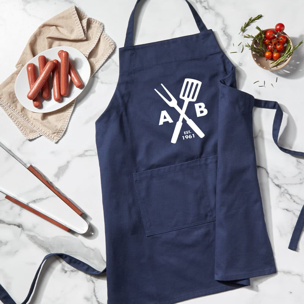 Chaque barbecue a un maître grill… qui est le vôtre ? Créez un tablier personnalisé pour qu'ils se balancent pendant votre réunion ! Maintenant, nous avons des tabliers de gril blancs et bleu marine avec de nombreuses options de conception étonnantes pour démarrer. Nous pensons que le design Tool Monogram est juste celui à personnaliser pour votre prochain barbecue - simple, élégant et montre qui est en charge.