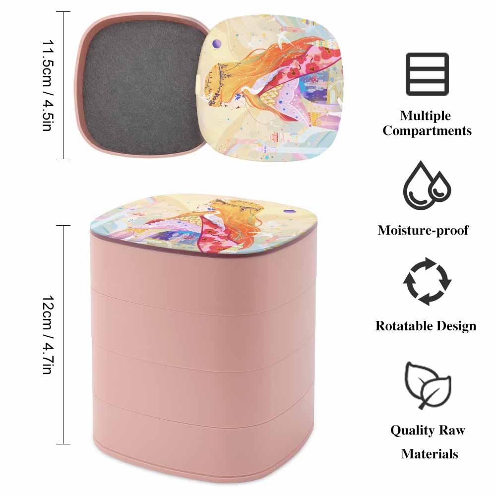 Boîte à bijoux rotative tendance personnalisée avec photo prénom motif texte. Cette boîte à bijoux rotative est fabriquée dans un matériau ABS de haute qualité, qui est durable et adapté à la vie quotidienne. Il peut être tourné à 360 degrés de manière à volonté. Il est facile à mettre ou à retirer et à pivoter à 360 degrés. Les bijoux rangés dans la boîte à bijoux sont clairs en un coup d'œil et faciles d'accès, ce qui rend le table de dressing plus artistique. De plus, il vous aide également à économiser de l'espace et à réduire la poussière. La conception unique à 4 couches peut faire un usage raisonnable de l'espace pour stocker et trier divers articles, tels que des bijoux, des montres, des outils de maquillage, etc. Il se rangeaisément. L'intérieur de la couche supérieur est un miroir spécialement conçu pour ranger de petits objets.