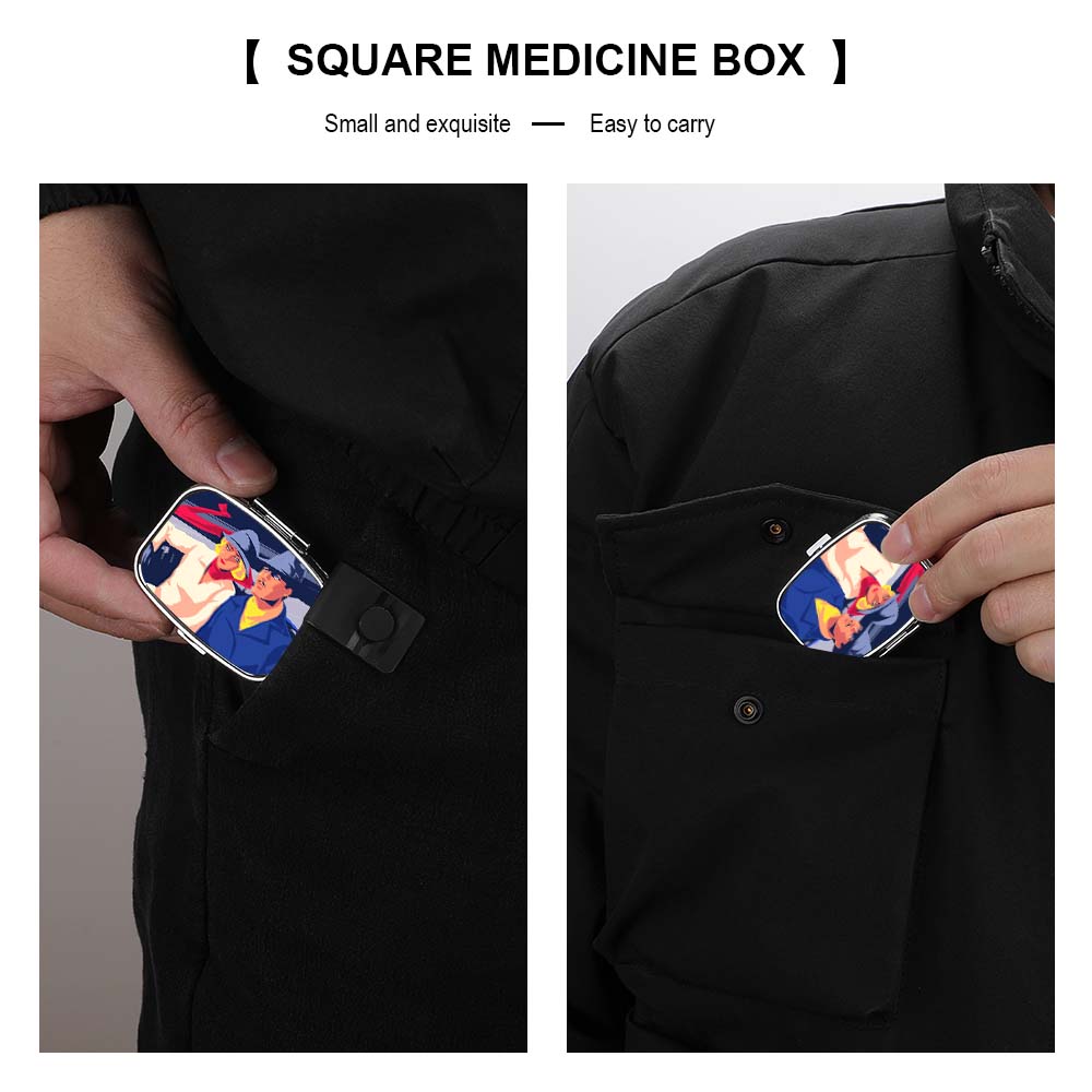 Boîte à pilules carré / boite médicaments journalier de voyage mini / pilulier de poche personnalisé avec photo motif logo texte. Cette boîte à médicaments carrée est constituée d'une structure métallique de haute qualité et la cloison interne est en plastique. La boîte à médicaments exquise est très brillante et la conception unique des boutons facilite l'ouverture et la fermeture, garantissant la sécurité du médicament. Il peut être utilisé non seulement comme boîte de rangement de pilules pratique, mais aussi comme belle décoration pour les vêtements. Parfait avec votre portefeuille ou votre sac à main! Elle est léger à transporter, et c'est un bon accessoire de voyage. Elle a une taille légère et compacte, donc cette boîte peut être mis dans une poche, un sac à main ou un sac de voyage. Facile à prendre, pour assurer la sécurité des pilules et des médicaments, très approprié pour le stockage quotidien des médicaments.