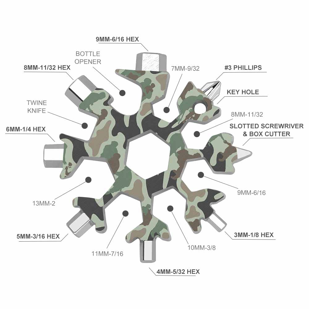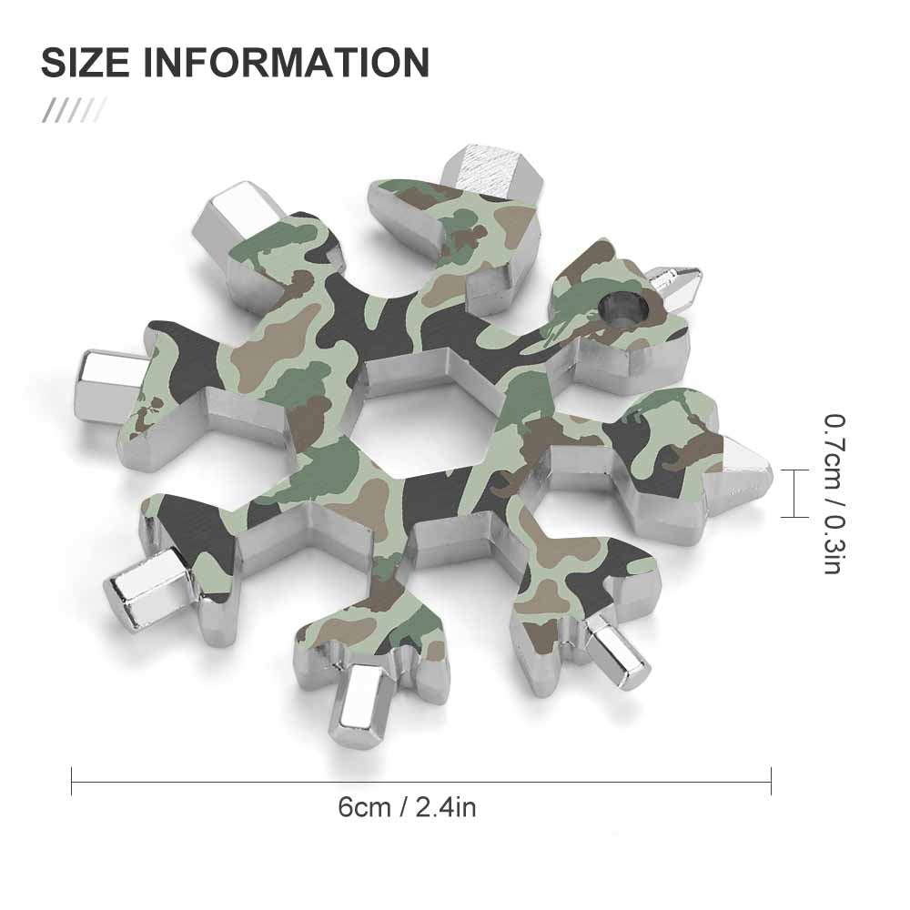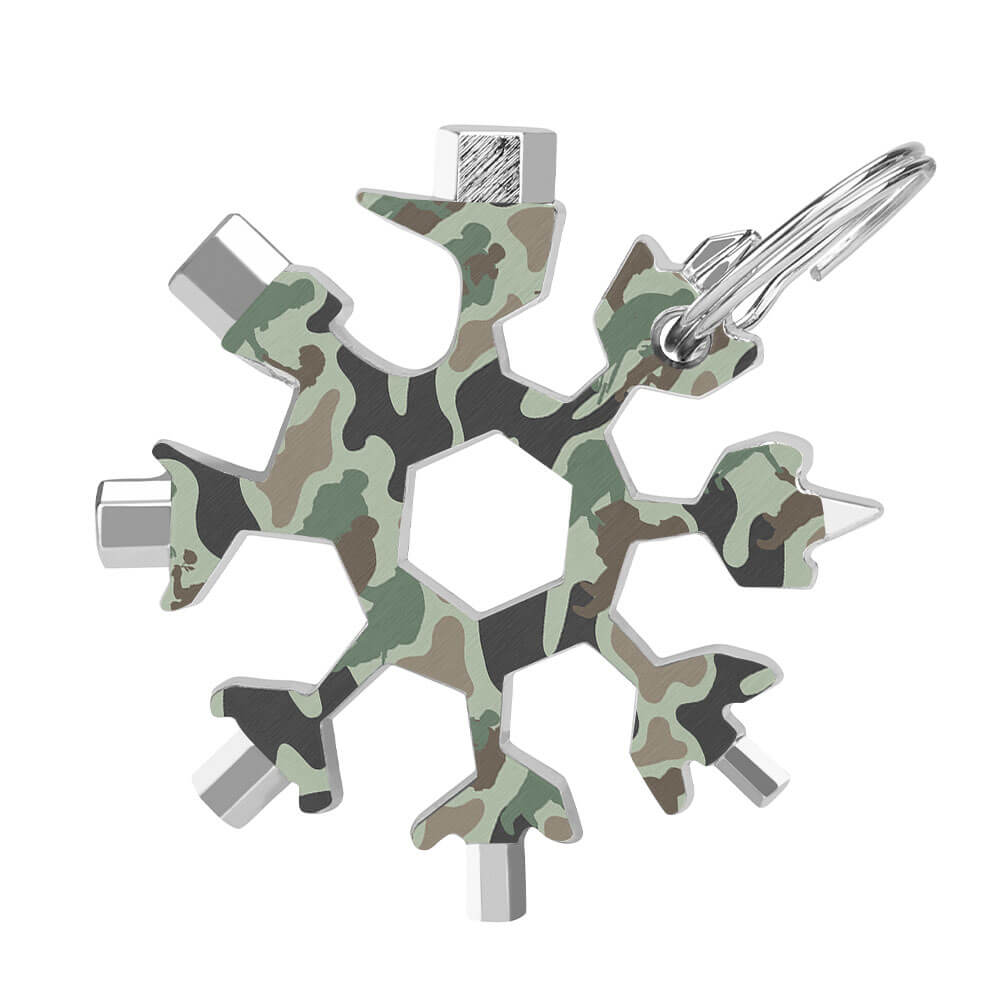 Clé à molette multifonction forme de flocon de neige personnalisée avec image logo motif texte. Cette clé multifonction est fabriquée en acier inoxydable de haute qualité, avec une finition soignée et une conception unique en forme de flocon de neige. C'est petite et pratique, n'occupe pas d'espace, qui est facile à transporter et utiliser. Équipé d'un trou pour porte-clés qui peut être accroché à un sac à dos pour éviter toute perte. Il convient aux outils multifonctions domestiques, aux voyages, à l'aventure, au camping, etc.