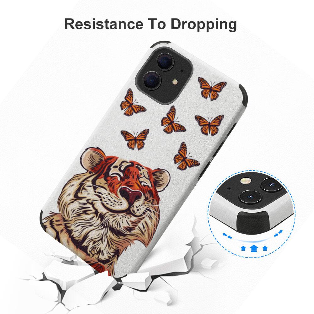 Coque/étui de téléphone en cuir fibre Apple série 12/12 mini/12 pro/12 pro max design en ligne impression personnalisé avec logo motif image texte. Cette coque de téléphone est conçue selon la série de votre iPhone 12. Sa découpe précise vous permet d'utiliser facilement tous les boutons sans retirer la coque du téléphone. La housse est fabriquée en matériau TPU élastique de haute qualité. De plus, un matériau légèrement plus épais est utilisé sur le côté du cadre pour mieux protéger l'écran du contact direct avec l'avion. Cette coque de téléphone est facile à utiliser et à retirer.