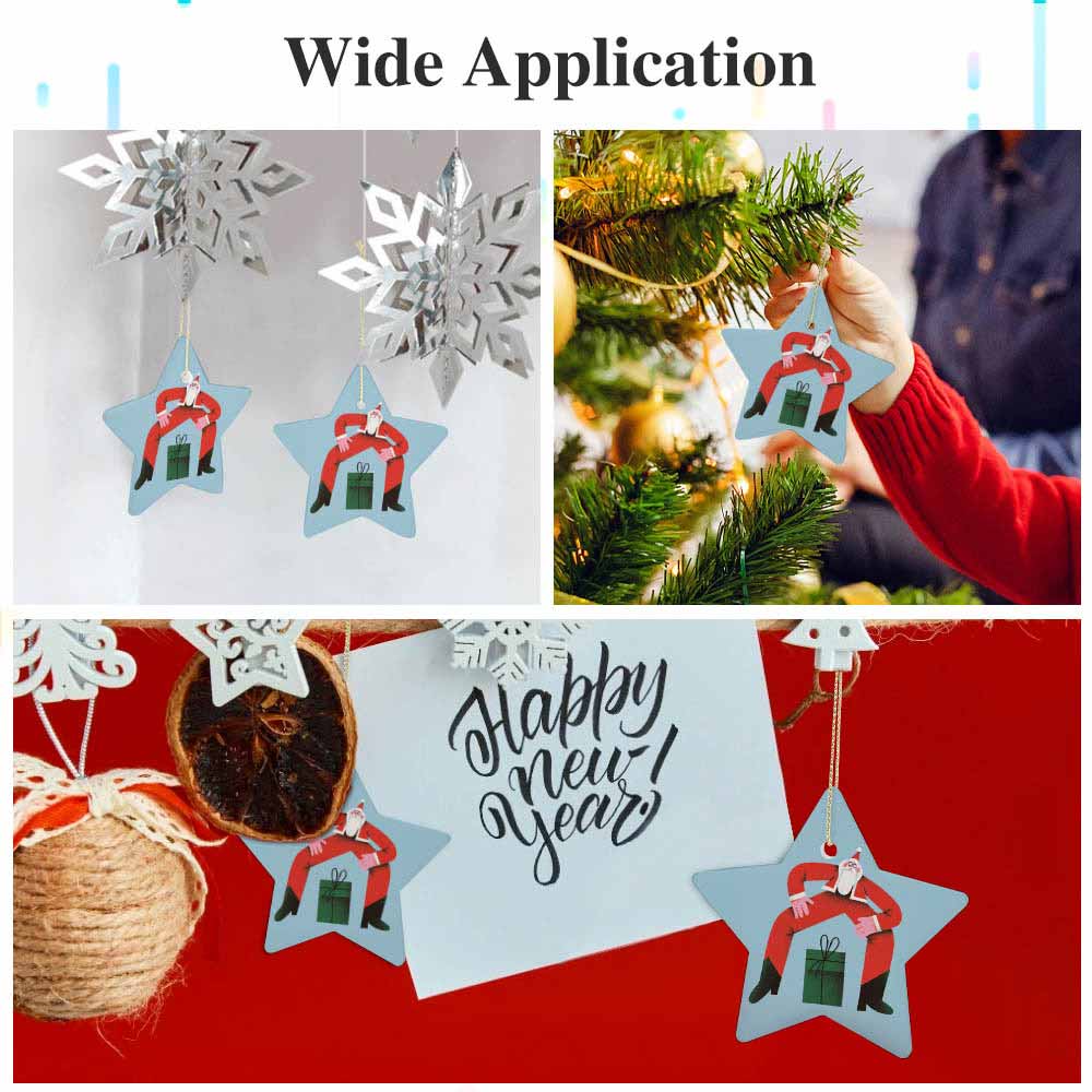 Décoration / ornement / pendentif de Noël en forme d'étoile exquis original céramique personnalisé avec image motif texte logo. Cet ornement en céramique convient comme pendentif pour un sapin de Noël ou comme décoration d'hiver pour un appartement. À Noël, les étoiles se balancent dans des fenêtres joliment décorées ou des arbres de Noël faits de branches de sapin. Les étoiles en céramique amusent tout le monde dans l'atmosphère de Noël. Ces ornements de bas prix peuvent être facilement assemblés et démontés, qui peuvent être réutilisés. Il peut également être utilisé comme décoration de Noël et autres décorations de vacances. Vous pouvez également l'utiliser comme cadeau pour les amis et la famille afin d'améliorer les sentiments mutuels.