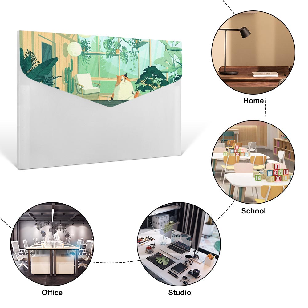 Porte document plastique bureau colorée design en ligne impression personnalisée avec photo motif texte logo. Elle est fait de plastique de haute qualité, qui est solide et durable. Des matériaux imperméables et résistants à l'humidité peuvent protéger vos documents importants. Il y a 6 poches pour trier les documents, équipées de boutons dissimulés pour protéger la sécurité des documents pendant le transport. Ce dossier est facile à transporter et peut être placé dans votre sac à dos, porte-documents ou valise. Ce dossier convient aux écoles, bureaux, maisons et autres lieux.