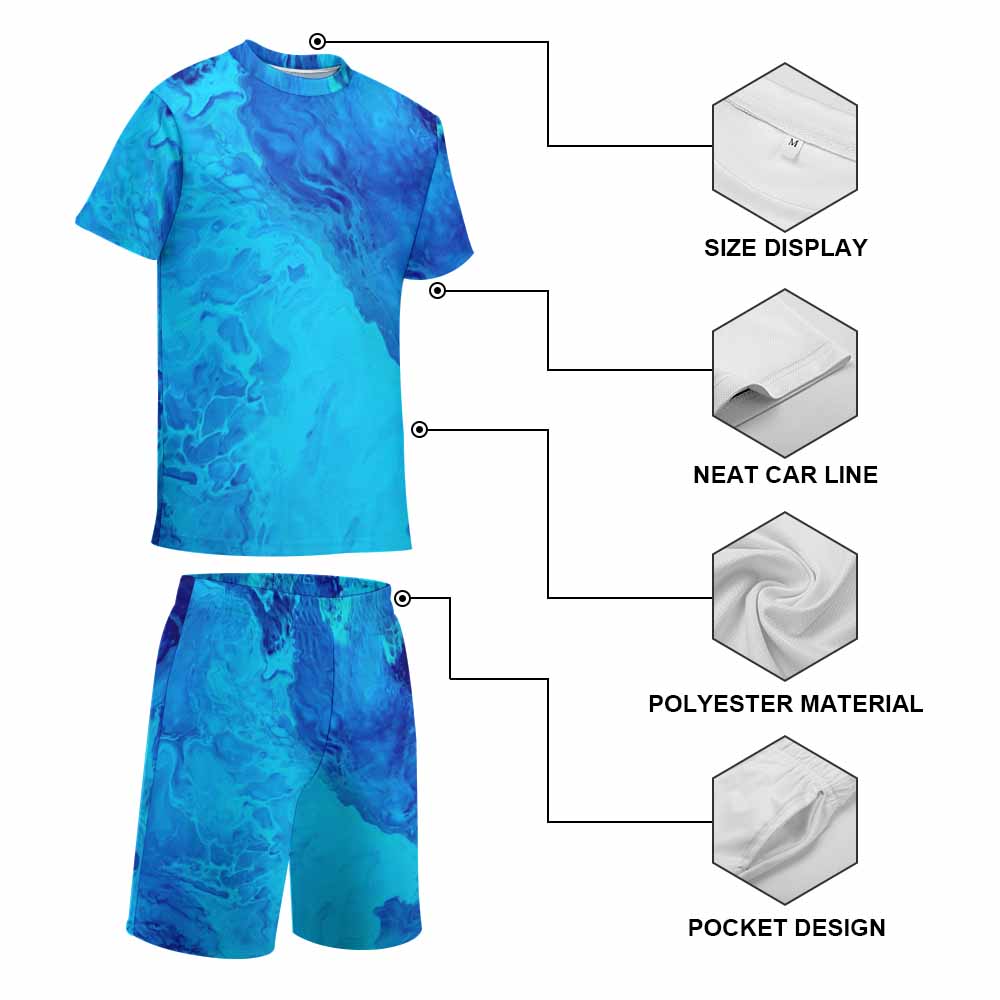 Ensemble tee shirt short junior décontracté tendance jeune adolescent original personnalisé avec photo texte motif logo. Cet ensemble pour les enfants est fabriquée dans un tissu en maille de haute qualité, à séchage rapide, doux pour la peau et respirant. La conception élastique à la taille est confortable et réglable. Et l'intérieur du short est équipé d'une doublure en maille douce, qui peut aider à protéger l'intimité. Ce t-shirt pour jeunes a une texture douce, qui est conforme aux normes internationales, ne contient pas de substances nocives qui irritent la peau.