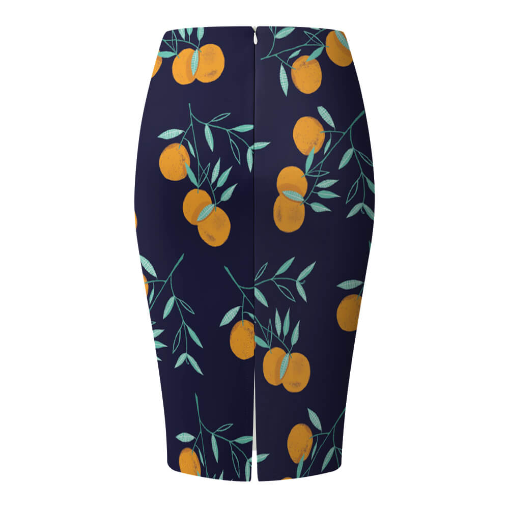 FS0819001 Jupe crayon taille haute au genou mi-longue impression personnalisée avec motif image logo texte.
