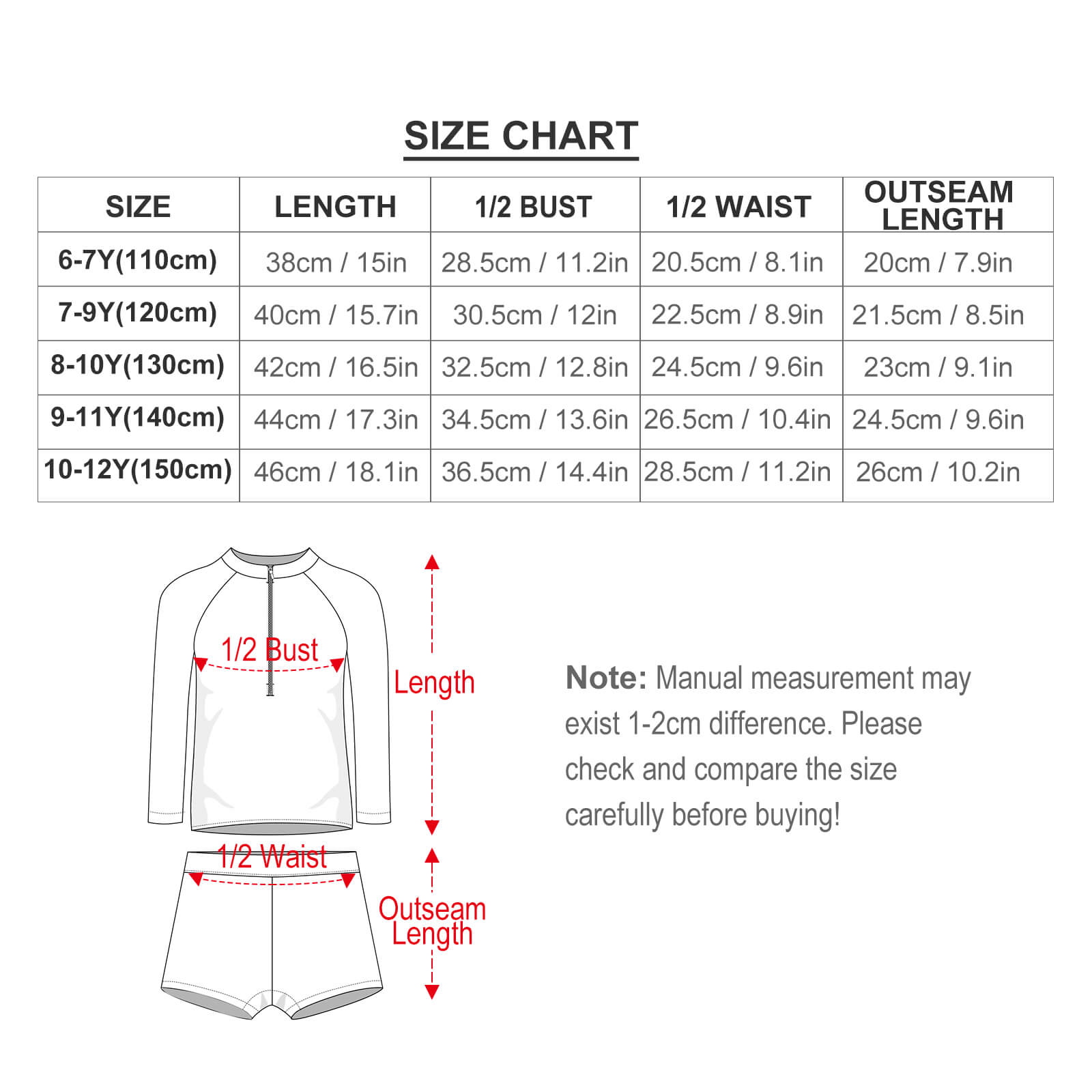 | 6-7Y | 38 | 28.5 | 20.5 | 20 |