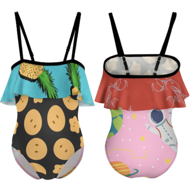 Ce maillot de bain sans bretelles pour enfants filles à plusieurs images avec maillot de bain à volants NT045 avec motif de texte photo design et impression vous-même est parfait pour les chaudes journées d'été à la piscine. Il inspire avec de jolis travaux de broderie pour un look mignon et élégant. Lavage en machine : 40°C, programme de lavage normal. Ne pas javelliser. Ne pas sécher en machine. Ne pas repasser. Pas de nettoyage chimique. Rincer abondamment après utilisation.