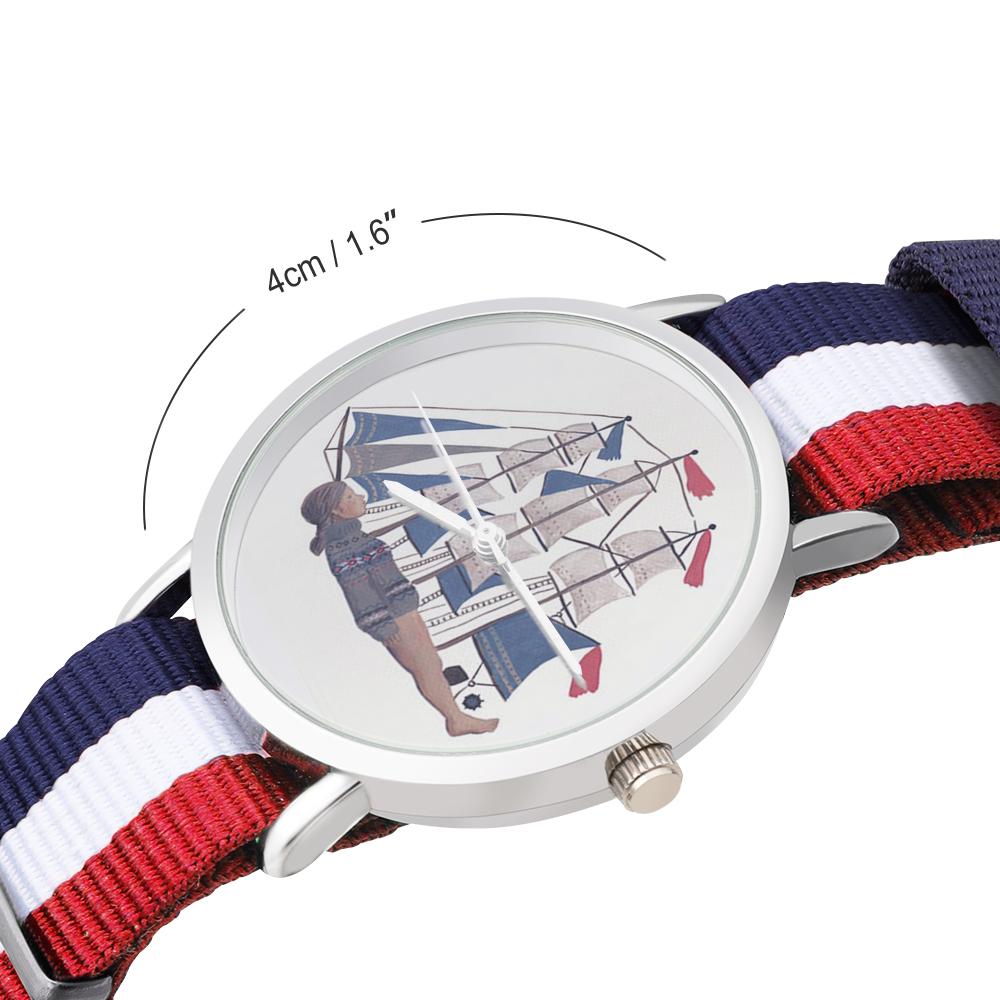 - Le bracelet tressé en nylon de surpiqûres bleu marine, rouge et blanc s'accorde parfaitement avec le boîtier argenté, reflétant la mode, la stabilité et la vitalité juvénile.