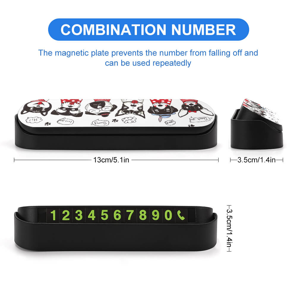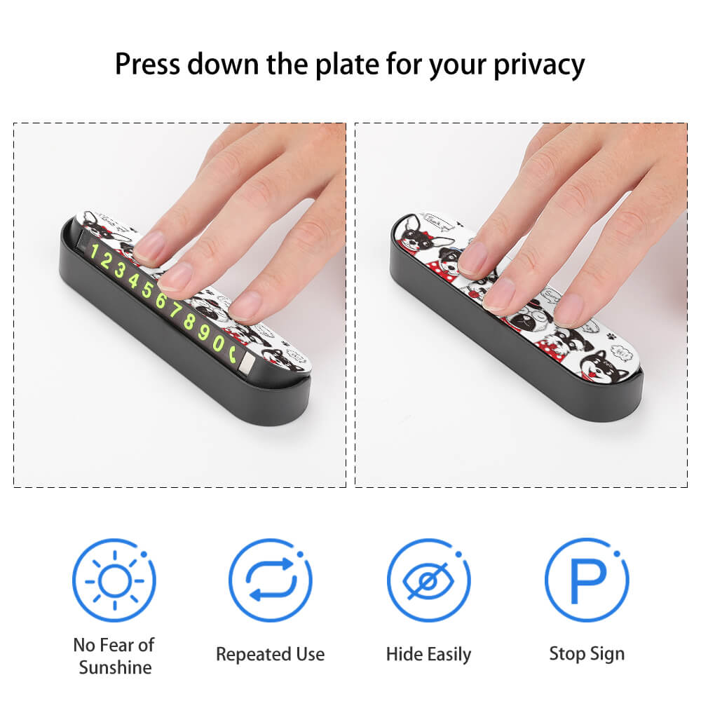 Plaque de stationnement en plastique personnalisé avec image / photo / nom / texte, ce plaque de stationnement est une plaque d'immatriculation cachée, et le numéro de plaque d'immatriculation peut être masqué en le retournant pour s'assurer que votre numéro est en sécurité. Masquer à une touche, basculer à volonté. Conception personnalisée, la surface du panneau d'arrêt peut être un motif de bricolage, vous pouvez personnaliser votre propre panneau d'arrêt personnalisé en fonction de vos propres préférences. Ce plaque d'immatriculation est fait de matériaux résistants aux hautes températures, qui ne sont pas déformés et durables. Autocollants numériques magnétiques, faciles à démonter et à retirer, faciles à installer et ne tombent pas. Convient pour être placé dans la voiture, pratique pour vous contacter pour déplacer la voiture, préavis temporaire, etc.