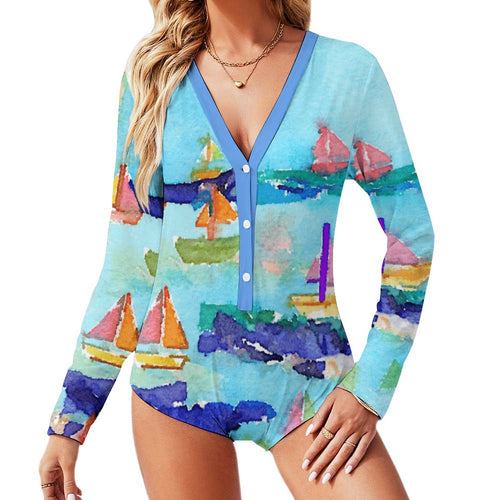 Combinaison col V manches longues femmes sexy ALRP personnalisé avec photo image logo motif texte (impression des multi-images)