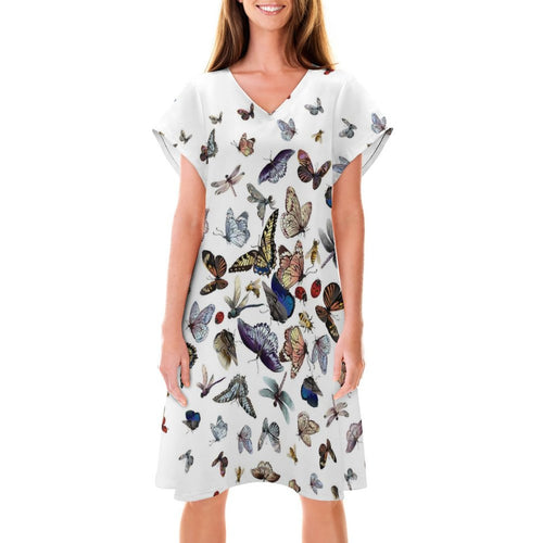 Impression des multi-images Robe en col V à manches courtes Grande taille Ample Femme personnalisée avec motif photo logo texte