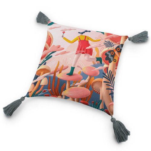 Oreiller en lin coton avec pompon personnalisé et design avec vos photos/images ou texte