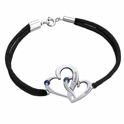Bracelet cœur entrelacé avec cristaux S0030 gravure personnalisé avec texte prénom