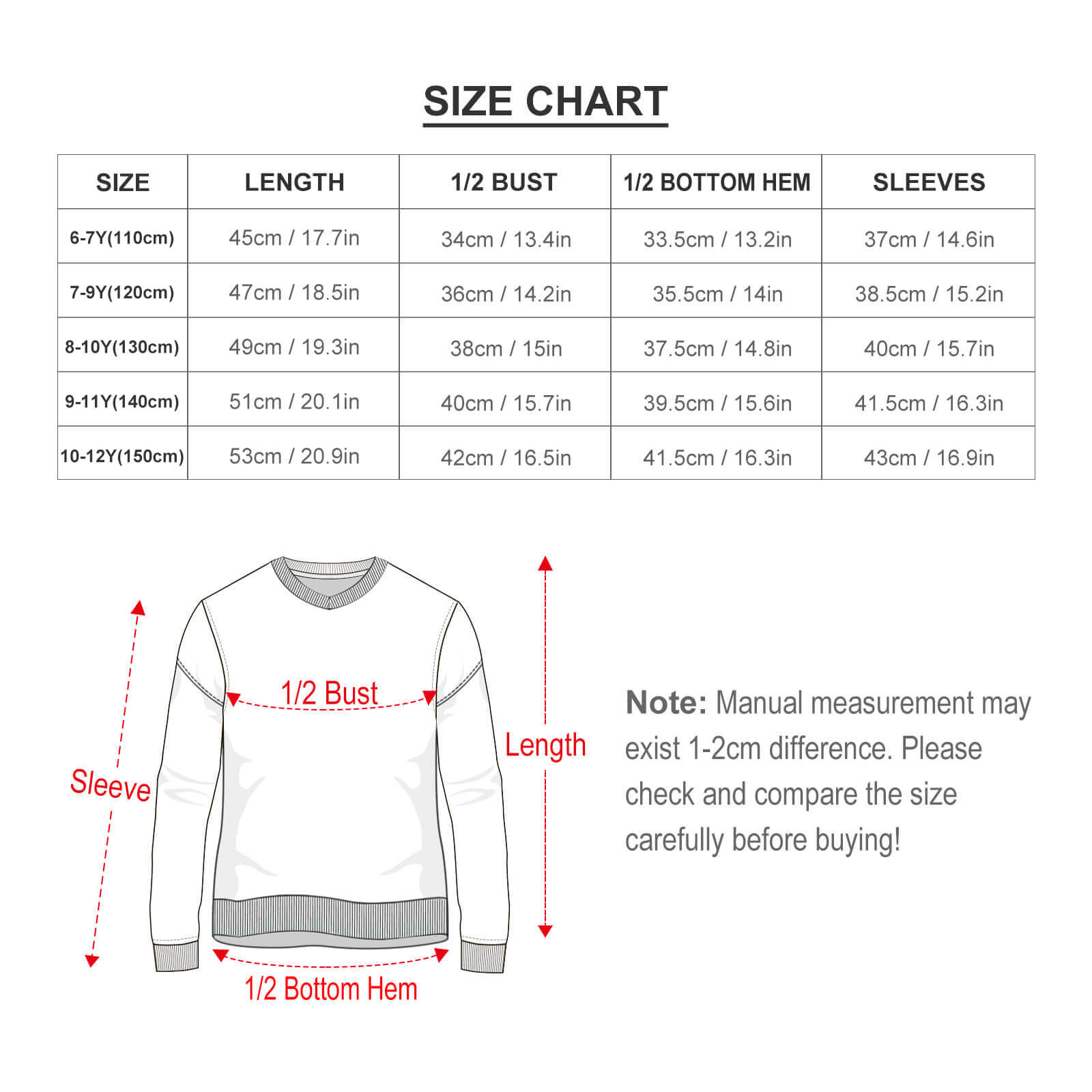 Qu'il s'agisse de photos individuelles, de collages, de motifs, de textes ou d'images, vous pouvez concevoir et personnaliser vous-même. Puisque nous pouvons imprimer le devant et le dos du pull de vos enfants individuellement, le look du vêtement dépend entièrement de vous.
