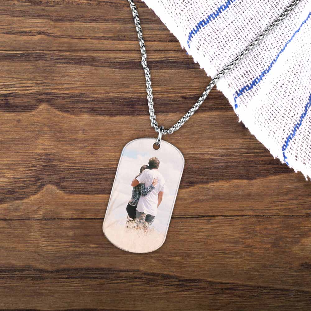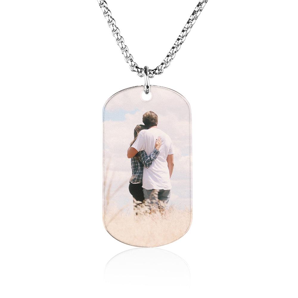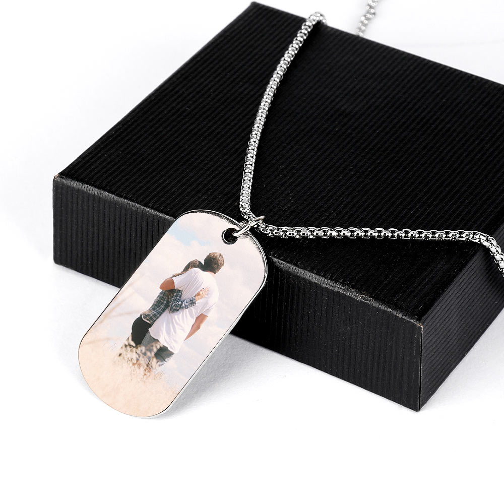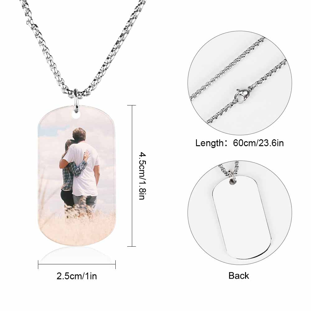 Notre Collier Memorial / Collier plaque commémorative gravure personnalisé avec photo lettre prénom est fabriqué en acier au titane de haute qualité, solide et durable. Super haute texture, poids léger, facile à accrocher, pas de charge sur le cou, ce collier est composé de deux métiers, beaux et atmosphériques. Ce collier convient à toutes les occasions, c'est un excellent choix avec des chemises, des manches courtes, des hauts à col en V et peut être porté n'importe où pour vous rendre magnifique. Vous pouvez librement bricoler votre texte ou vos images préférés sur la marque du collier, ce qui est le choix de cadeau idéal pour les anniversaires, la Saint-Valentin et les anniversaires.