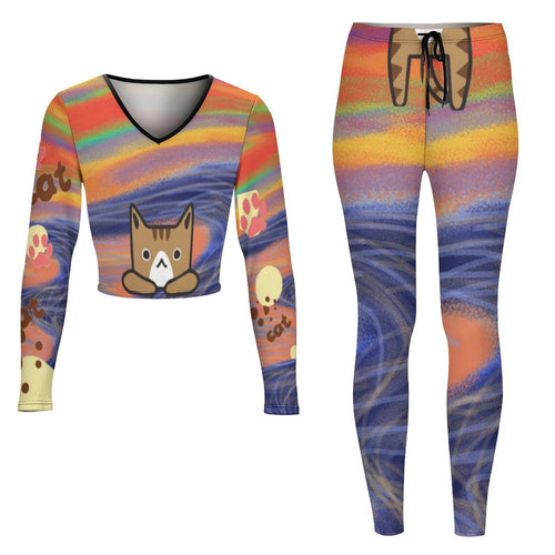 Ensemble tenue sport fitness sweat-shirt à col en V personnalisé avec photo et texte (impression d'image unique)