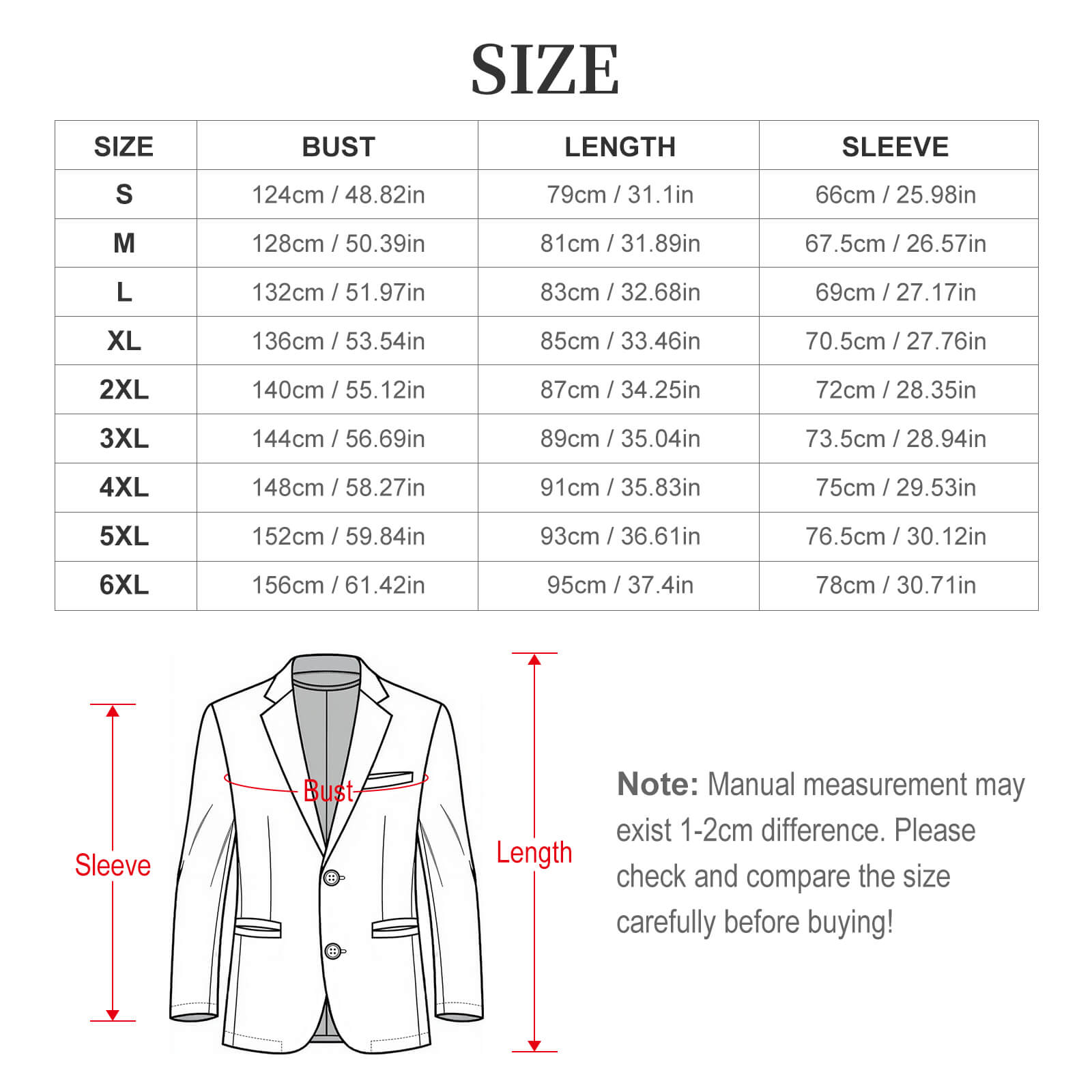| 6XL | 95 | 156 | 78 |
