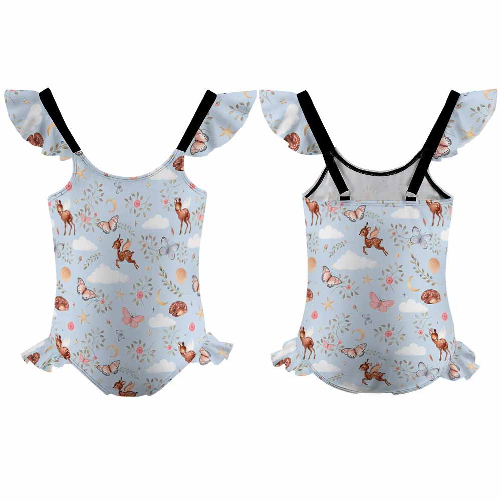 Ce maillot de bain une pièce à volants pour fille NT040 personnalisé et design avec vos motifs photos ou votre prénom est composé à 86 % de polyester et à 14 % d'élasthanne. Il est doux et élastique. Il s'adapte à la peau, est respirant, confortable, facile à nettoyer et antisalissure. Les bretelles réglables à volants sont à la fois belles et pratiques, adaptées aux filles de différents types de corps, montrant parfaitement votre mode et votre gentillesse.