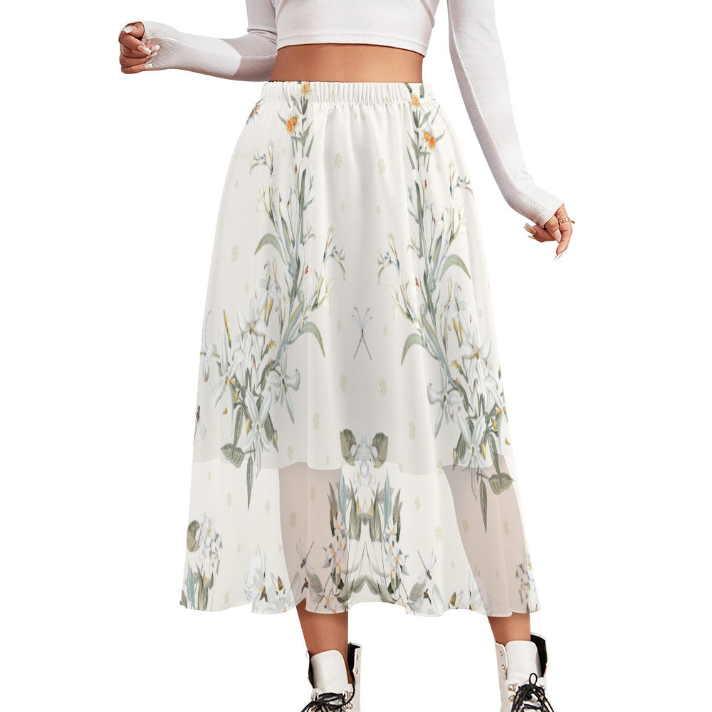 Jupe longue en mousseline de soie double couches décontractée Femme NZ062 personnalisée avec image motif texte logo (impression d'image unique). La mode se démode, le style classique jamais. Comme cette jupe d'été en mousseline de soie, elle fait preuve de huates qualités de design. D’ailleurs, cette jupe longue ne se rétrécira pas après le lavage. La couche interne de cette jupe est jusqu'aux genoux. Ça vous rend plus libre et élégant. Elle convient au travail, à la maison ou en voyage, ect.
