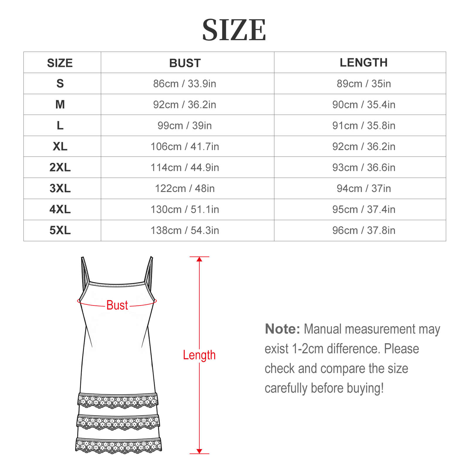 5XL 138cm / 54.3in 96cm /37.8in
