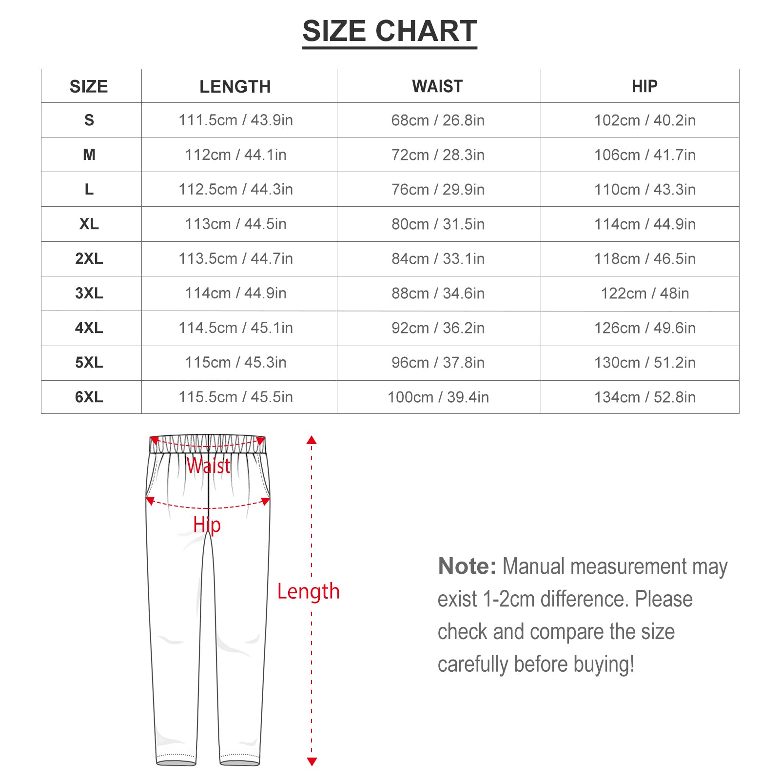 Taille Longueur de Shirt (cm) Circonférence de la poitrine (cm) Longueur de la manche (cm) Longueur du pantalon (cm) Tour de taille  (cm) Tour de hanche (cm)