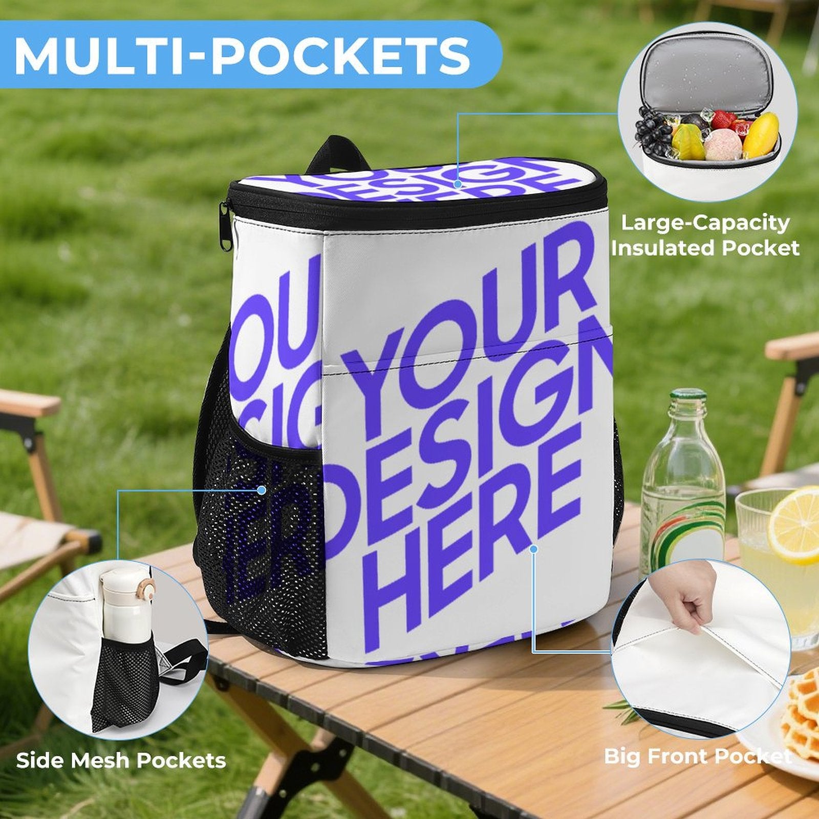 Sac à dos Ice Pack 0536. Ce sac à dos en sergé robuste et résistant offre un grand espace de rangement et de la place pour d'autres objets tels qu'un téléphone portable, un ordinateur portable, un parapluie, etc. Un compartiment isotherme permet de conserver les aliments au frais. Les poches latérales sont idéales pour ranger bouteilles et boissons. Ce sac à dos tout-en-un est un véritable accessoire multifonction.