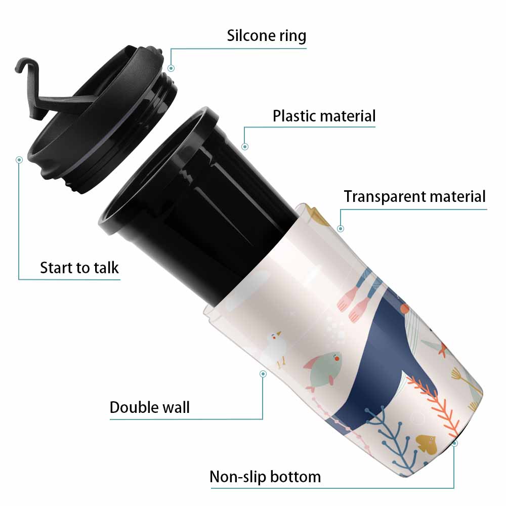 Tasse à café plastique design en ligne moderne personnalisée avec photo motif logo texte. Cette tasse à café personnalisée entièrement imprimée avec couvercle est fabriquée à partir de matériaux respectueux de l'environnement, sûrs, non toxiques et résistants aux températures élevées. La conception à double couche, avec une bonne fonction d'isolation thermique, elle peut être utilisée pour les boissons glacées et les boissons chaudes, facile à transporter. Le fond de la tasse à café personnalisée entièrement imprimée avec couvercle est équipé d'un tapis antidérapant pour empêcher votre tasse de glisser accidentellement pendant l'utilisation. C'est le meilleur cadeau pour la famille, les amis et les collègues qui aiment le café, les boissons chaudes ou froides.