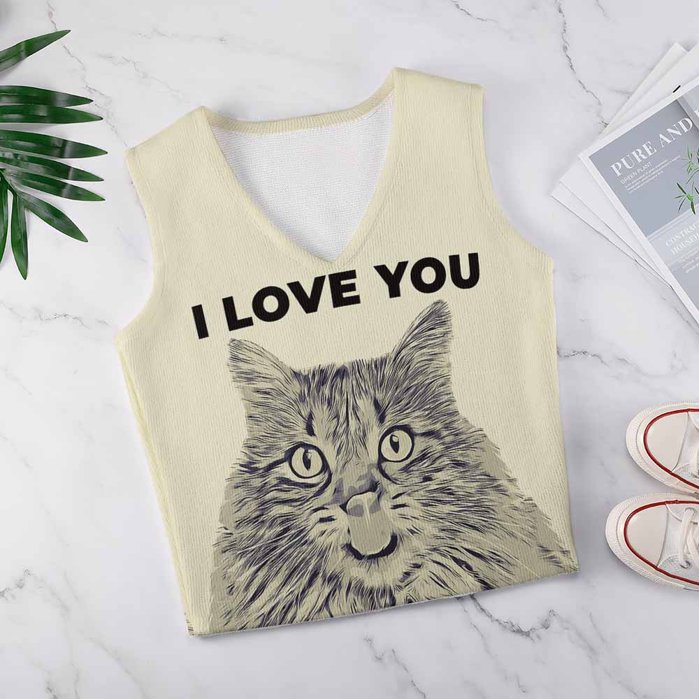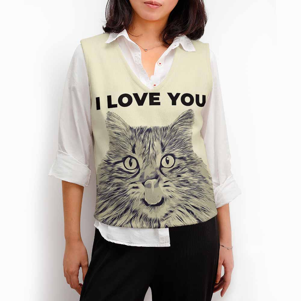 MY05 Impression d'image unique Gilet pull tricoté en col V élégant à la mode ample femme personnalisé avec photo texte motif logo. Notre gilet est fait de polyester, qui est très confortable, respirant et doux pour la peau. Avec le style à la mode, design ample du pull sans manches à col en V, bonne performance thermique, il est exquis et à la mode en même temps, qui met en valeur votre noble tempérament. Notre gilet à col en V s'associe facilement avec un jean, un legging, une chemise ou un haut à col montant, ou directement avec un pantalon slim évasé, adapté à toutes les femmes. Vous pouvez offrir ce gilet en maille ample à votre petite amie comme cadeau d'anniversaire ou de Noël.
