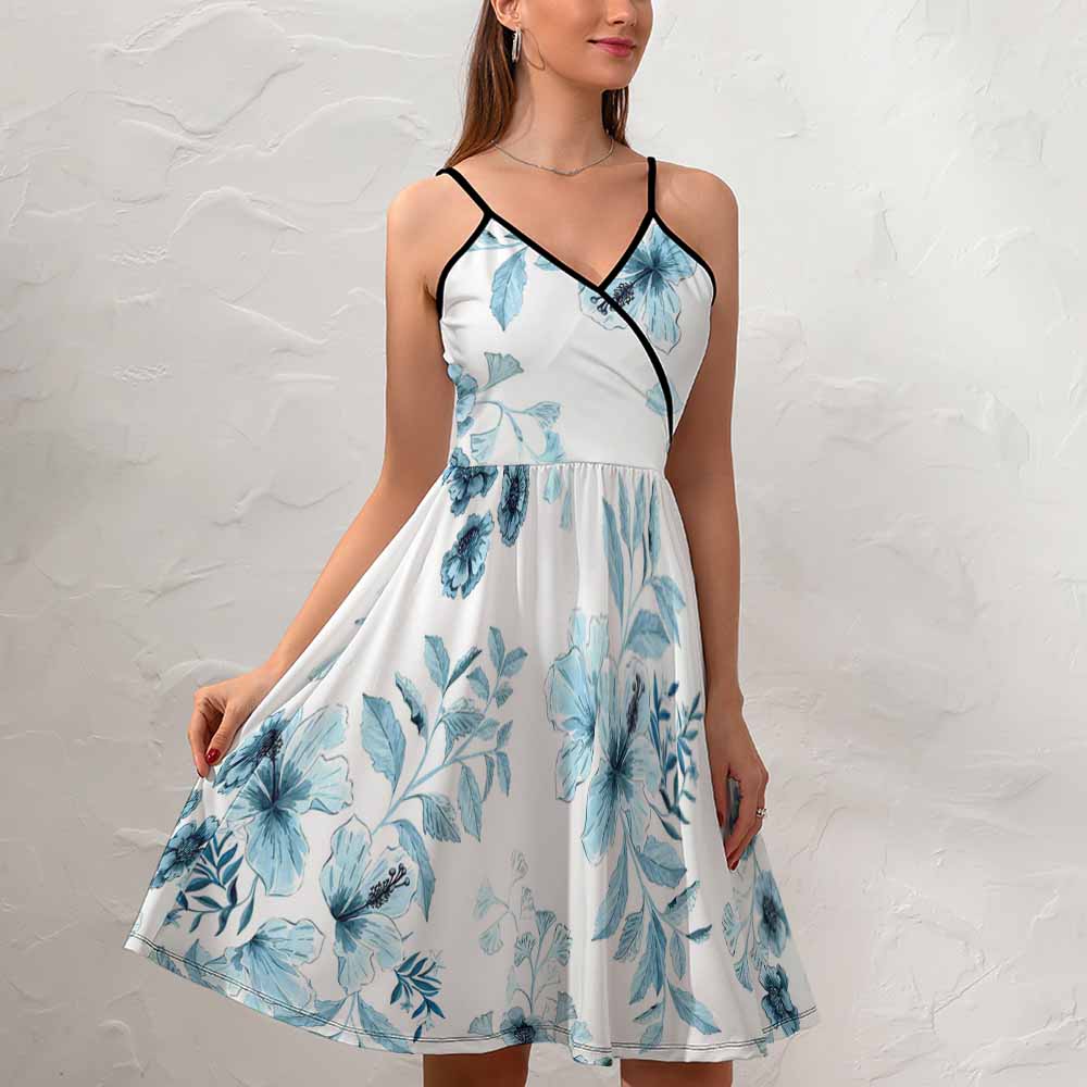 Robe décolleté en V à volants design et personnalisée avec photo motif texte (impression d'image unique). Cette robe à col en V a un ourlet à volants, ce qui la rend simple et élégante, vous aidant à montrer votre charme unique. Cette robe sexy en V profond est fabriquée dans un tissu doux, respirant et agréable pour la peau, avec une grande élasticité, une charmante clavicule et une courbe parfaite du corps. La robe fronde a une coupe slim et des bretelles réglables pour mettre en valeur la silhouette.